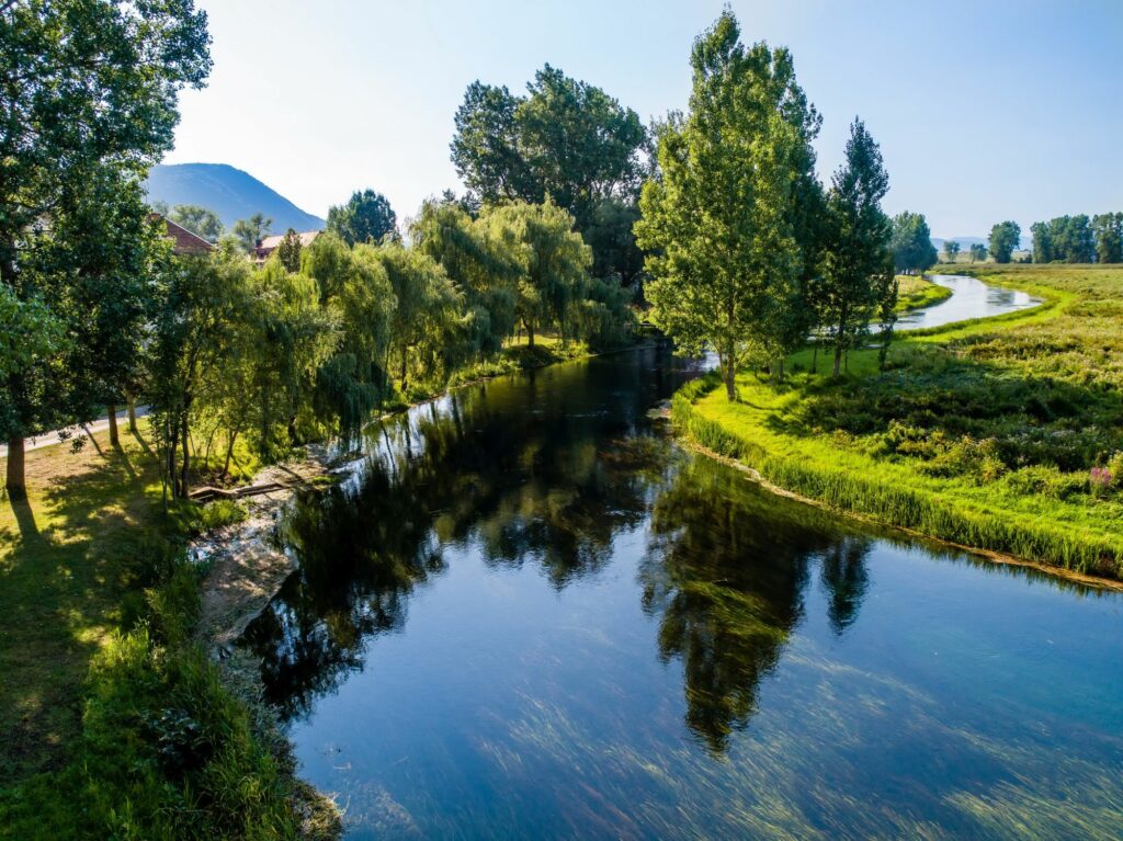 Šetnica uz Gacku nudi nestvarnu paletu boja. Rijeka je toliko prozirna da možete vidjeti svaku vlat trave na dnu, stvarajući vizualni mir koji je rijetko gdje dostižan.