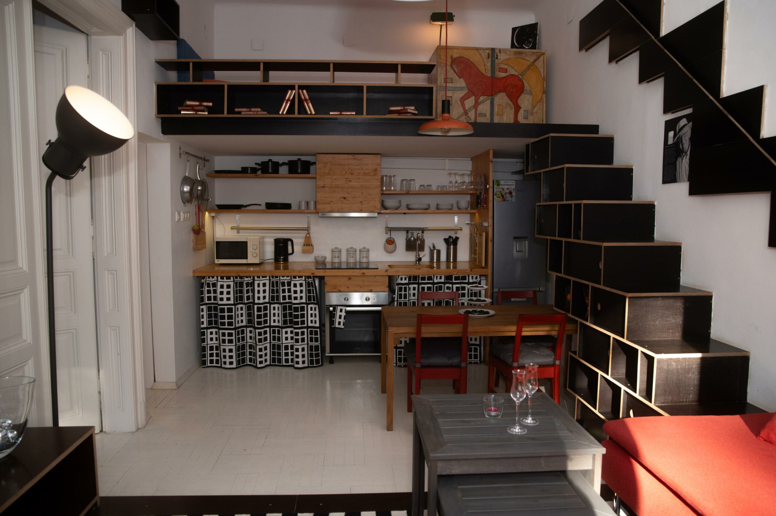 Interijer apartmana oblikovan je puno ranije u suradnji sa Svenom Jonkeom, međunarodno priznatim hrvatskim dizajnerom, čiji se potpis prepoznaje u galerijskom konceptu, multifunkcionalnim elementima i unutarnjoj arhitekturi prostora.